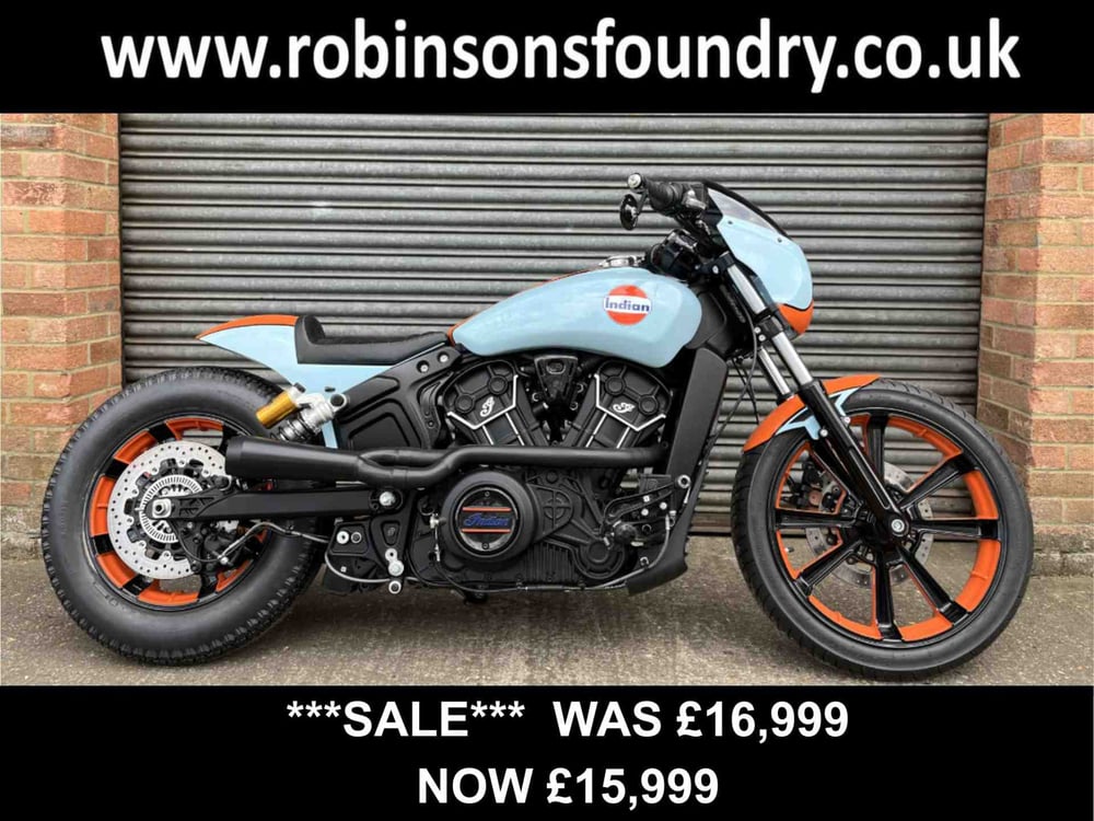 Introducing the Foundry Le Mans GT40 Custom Indian Scout Rogue — a truly one-of-a-kind motorcycle designed to celebrate the legendary 24 Hours of Le Mans race. This brand-new, zero-mileage Indian Scout Rogue stands in a league of its own, combining the raw power and heritage of Indian Motorcycles with bespoke customisation and high- performance upgrades.Every detail has been thoughtfully considered: it features Ohlins Piggyback rear shocks for unparalleled handling and ride quality, a Cafe Racer-style seat unit with a fully custom seat, a side-mounted number plate, K&N performance air filter, and bar-end mirrors to complete the aggressive, race-inspired aesthetic. The bodywork and wheels have been custom-painted in the iconic Ford GT40 colours, giving this Scout Rogue a visual identity as bold and historic as the race it celebrates.Built for enthusiasts who demand performance, style, and exclusivity, this motorcycle merges modern engineering with timeless race heritage, making it not just a ride, but a statement. With zero miles, meticulous craftsmanship, and a suite of premium upgrades, the Foundry Le Mans GT40 Custom Scout Rogue is more than a bike — it’s a collector’s dream and a tribute to motorsport history. All vehicles are subject to a comprehensive pre delivery inspection prior to collection and come with a minimum of 6 months MOT and 3 months/3000 mile warranty - with the option to extend (subject to T&Cs). HPI Checked. Walkaround videos and delivery available upon request. Secure with £100 deposit. Finance available (T&C's Apply). Our used stock changes constantly please contact us if you cannot see what you are looking for.