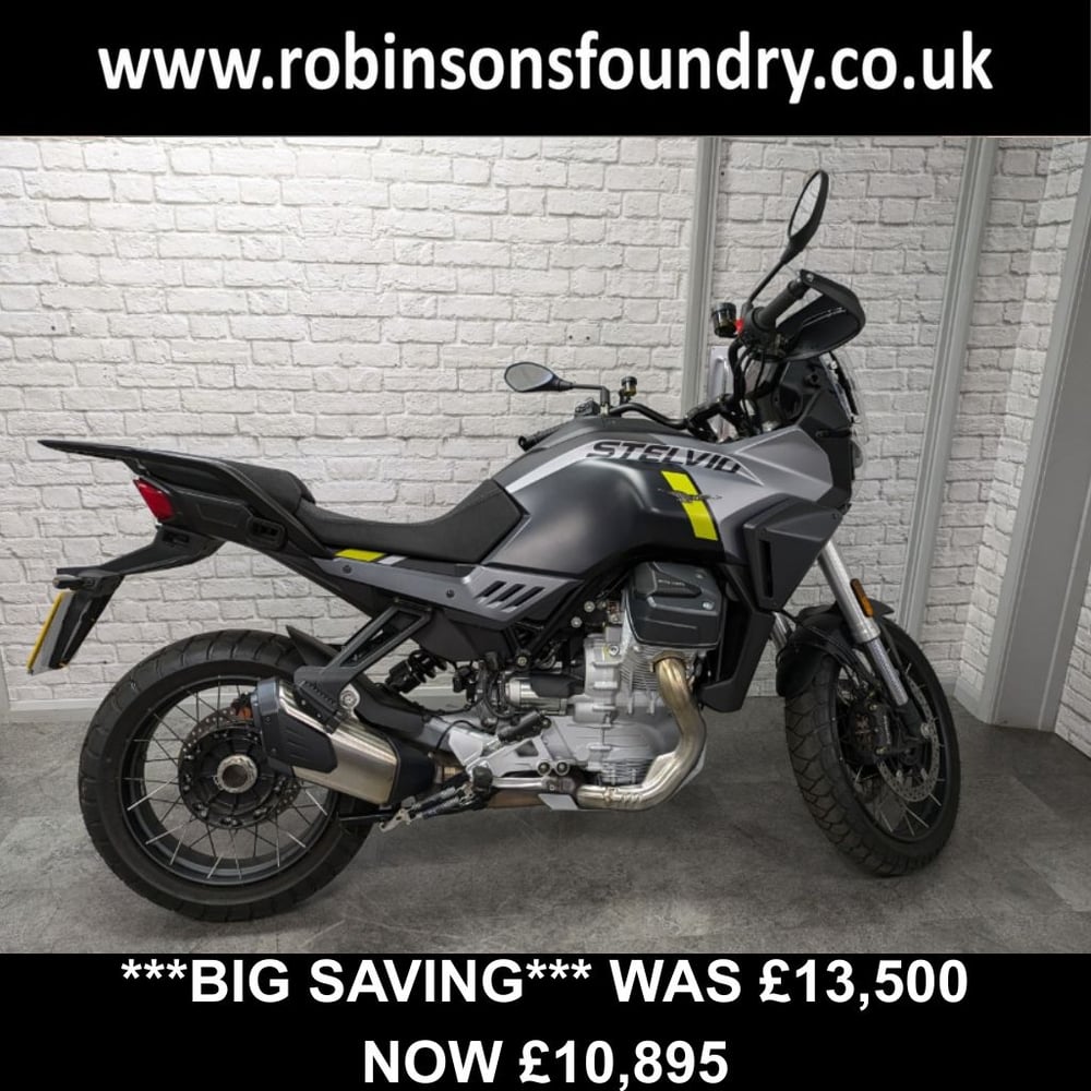 ***Massive Price Drop*** WAS £13,500 NOW £10,895 We are delighted to offer this Moto Guzzi Stelvio with 1 owner from new. 1st registered in May 2024, supplied by us here at Robinsons Foundry Canterbury. This fantastic tourer is ready to go, having covered a mere 349 miles. It requires a few miles more to run in prior to the 1st service, then it'll be ready for your next adventure. Riding the Stelvio is about savouring the open road in pure Moto Guzzi fashion, with no desire to be anywhere else in the world. The modern adventure tourer by Moto Guzzi is ready to accompany you everywhere with its unique style and state- of-the-art technology, made to improve your driving experience. All vehicles are subject to a comprehensive pre delivery inspection prior to collection and come with a minimum of 6 months MOT and 3 months/3000 mile warranty (subject to T&Cs).Walkaround videos and delivery available upon request Lowrate finance available from just £99 deposit. (T&C's Apply)We are the South Easts premier Moto Guzzi retailer so if youdo not see what you are after then do not hesitate to call.