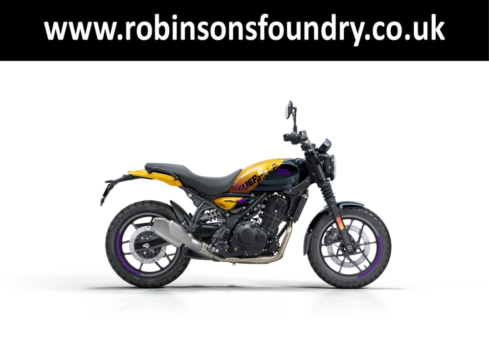 The all-new Royal Enfield Guerrilla 450, a premium modern roadster built for visceral responsiveness, raw instinct and pure intuition, is a 'declaration of independence' that defiantly stands apart, making it a formidable 'all- roadster' Unique Colorways: Available in Brava Blue, Yellow Ribbon, Playa Black, Peix Bronze and Smoke Silver. All NEW Royal Enfield models come with 3 years Manufacturers Warranty, 3 years Roadside Assistance and Riders of Europe welcome pack. Delivery available upon request. Finance available. (T&C's Apply) We are the South Easts premier Royal Enfield retailer so if you don't see what you are looking for then don't hesitate to call. Walkaround video available upon request.