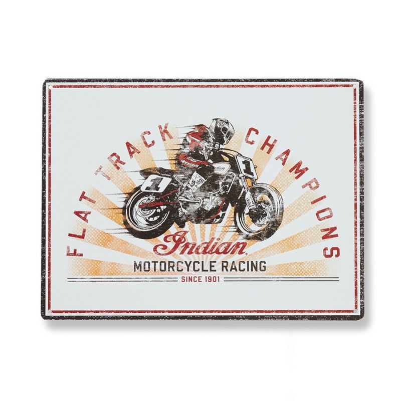 Remind the world that Indian Motorcycle is built on its championship flat-track pedigree with this bold and modern metal sign.