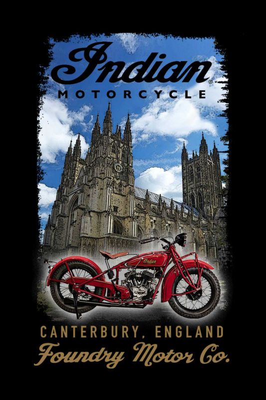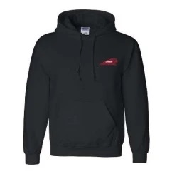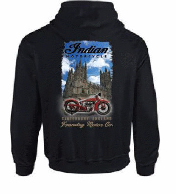 Custom Black Hoodie with Red Warbonnet Logo on the front Left Hand Breast and Foundry Motor Co Cathedral Image on the rear.