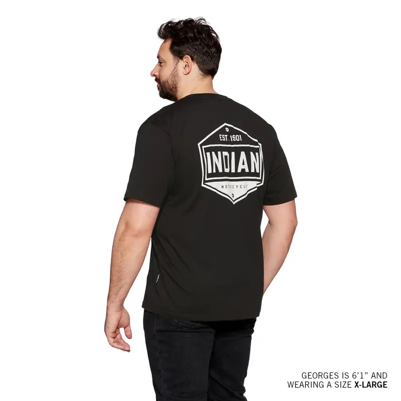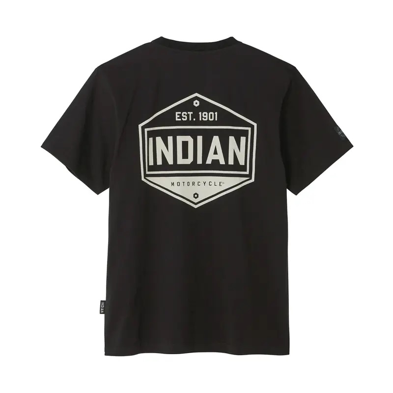 Rep your favorite motorcycle company with this Hexagon Graphic Indian Motorcycle T-Shirt.