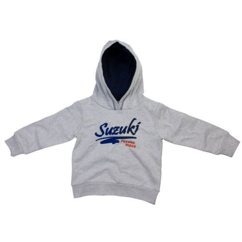 Fluffy Kids hoodie in grey-melange, with multicoloured Suzuki lettering on the front