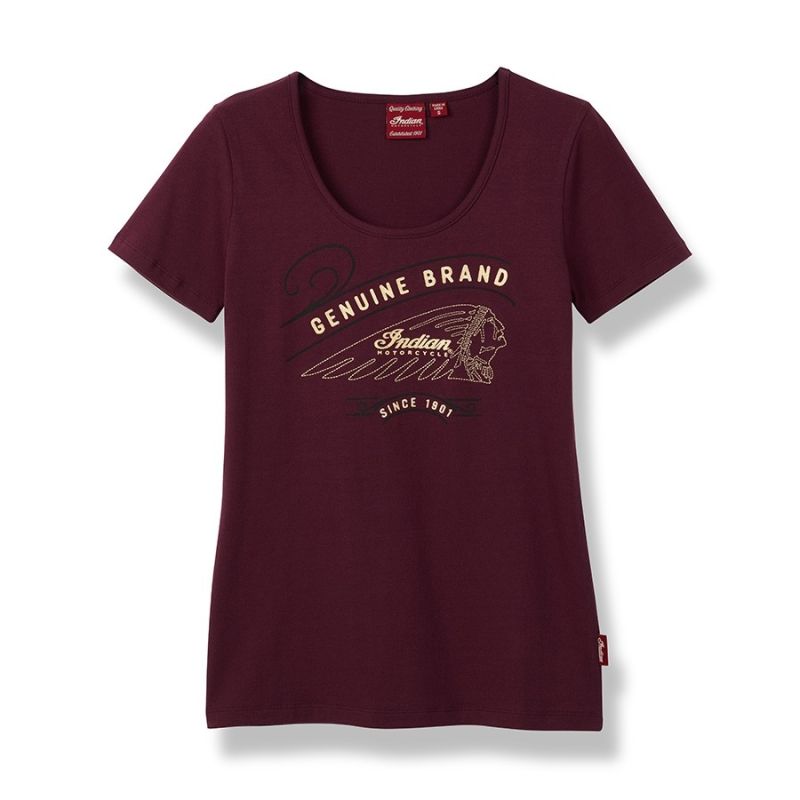 The Indian Motorcycle headdress always stands out, but that’s truer than ever on this embroidered purple tee.