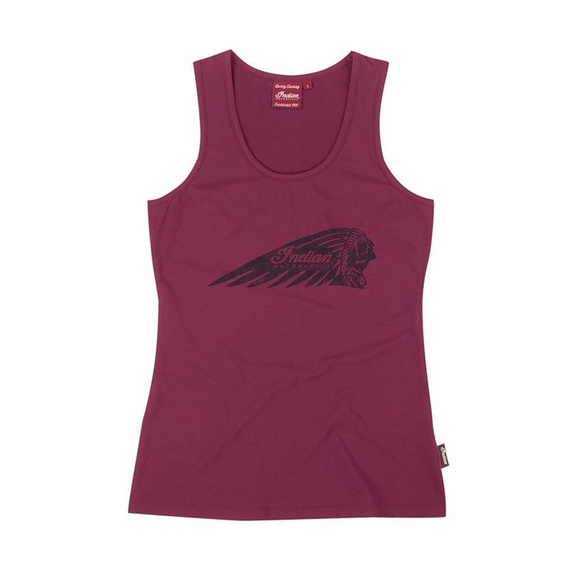 This port color tank comes in a stretch fabric and is cut for a close and flattering fit to the body. A simple black Indian Motorcycle® design is printed across the chest using a discharge print.