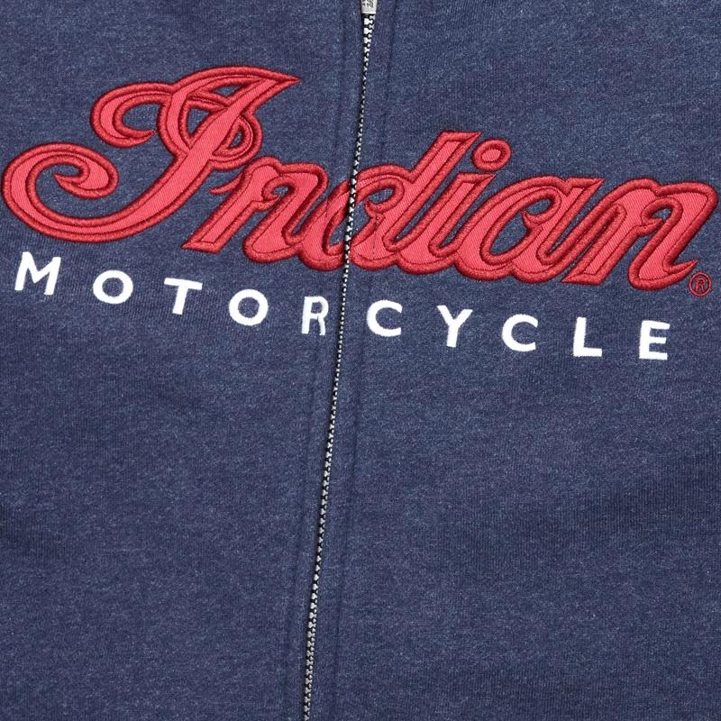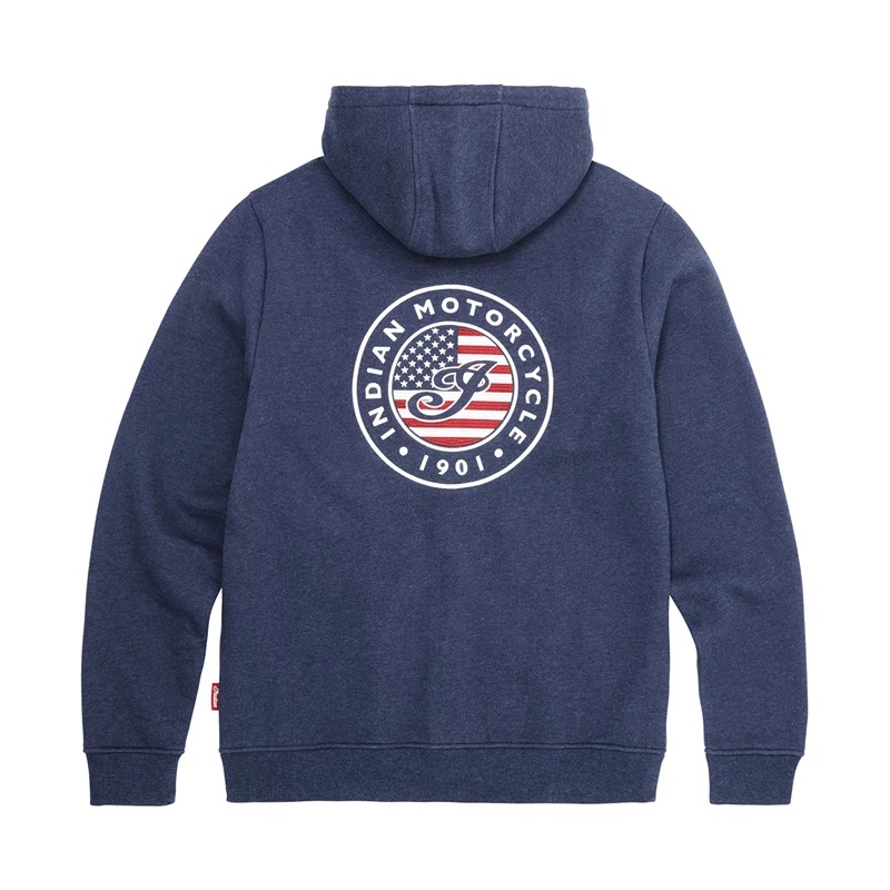 - Large embroidered script Indian Motorcycle logo on the front and large embroidered script “I” American flag logo on the back