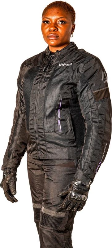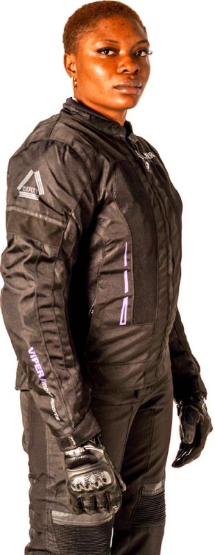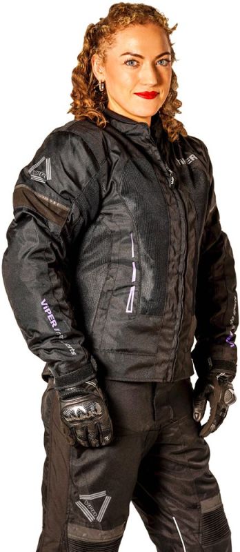 The Lua Ladies CE Jacket is Fully CE Tested & Compliant (Level A) and from tough 600D Textile Construction with an outer shell constructed of a mix of nylon, amara and mesh. It also has removable thermal and waterproof linings and comes with CE tested and approved elbow and shoulder armour. A pocket is fitted for an optional CE approved & tested back protection. The Viper Lua also has an adjustable neoprene comfort collar and fit with stretch panels to moving areas. All round side waist and cuff adjustments for a sure fit. There is also a VPR Connection Zip to fit all VPR Trousers.