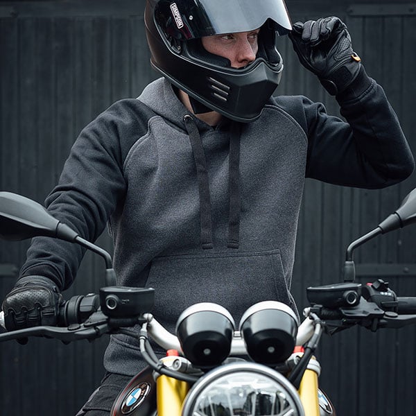 The Stealth Riding Hoody brings together discreet styling and modern motorcycling protection. The super-soft hoody is Built With Kevlar® to increase its abrasion resistance, within a single monofleece layer construction. Further protection comes from D3O®'s Ghost armour which is pre- fitted to the shoulders and elbows. A close-knit mesh lining and cotton ribbed cuffs enhance comfort, and the hoody can be easily attached to Merlin trousers using the jacket-to- jean connector zip.