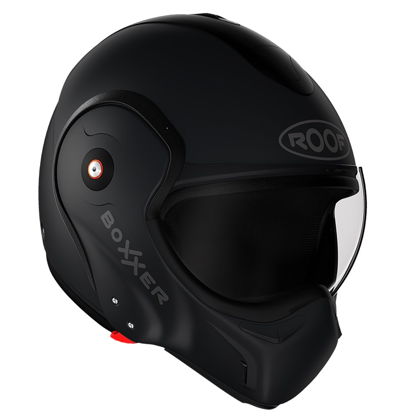 Iconic Flip Front Fibreglass Motorcycle Helmet from Roof which can be used in the open or closed position.