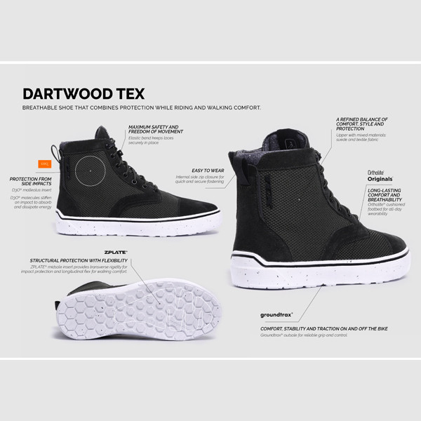 The TCX Dartwood Tex Motorcycle Boots combine ventilation, modern urban styling, and advanced protection technology. Lightweight and breathable for warmer days, they offer the perfect balance between riding safety and everyday comfort—ideal for riders who want footwear that performs both on the bike and while walking around the city. ???