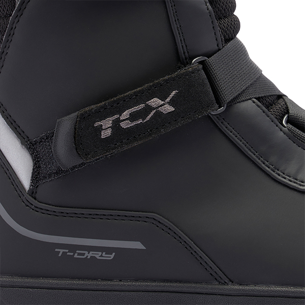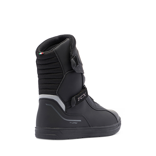 Tourstep WP are the new waterproof motorcycle ankle boots that guarantee the highest standards of TCX protection – owing to reinforcements on ankle, toe and heel – as well as versatility of use and maximum comfort when riding and walking. The waterproof T-DRY membrane makes Tourstep the best protection even in the event of rain and very cold climates, while the band and Velcro lace-up fastening system allows for quick closure and precise fit, ensuring practical and comfortable wear in any context. The Groundtrax® sole guarantees stability, grip and optimal traction on the foot pegs as well as superior comfort once off the saddle. Zplate® technology blends transverse rigidity and great longitudinal flexibility, allowing these ankle boots to combine solidity and transversal impact resistance with the ability to follow all foot movements when walking, for greatest freedom in all everyday activities. The integration of the Ortholite® insole with durable cushioning adds a higher level of comfort. Owing to their versatile look and adaptable nature, the Tourstep WP ankle boots are ideal for any type of motorcycle outing, both urban and long-distance.