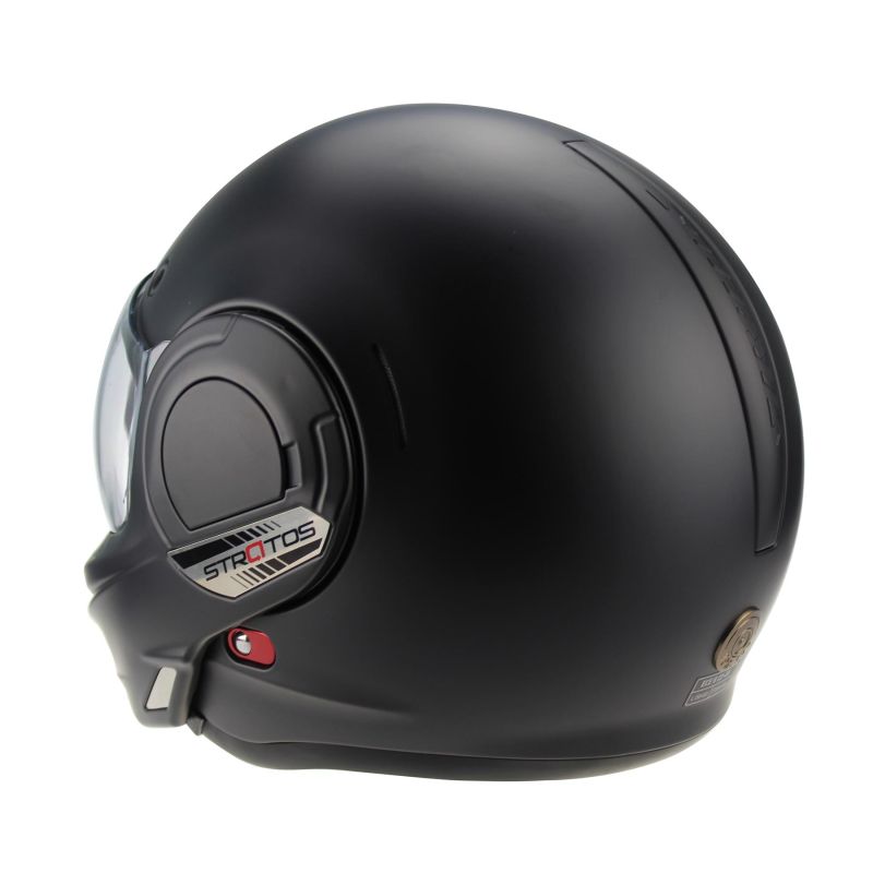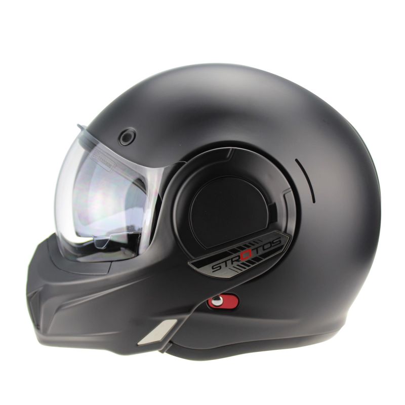 The Viper F242 is a Flip Front Reverse Motorcycle Helmet of which the chin guard rotates around to the back of the helmet. This makes it very convenient for a variety of weathers and riding styles. The F242 is ECE 22.05 Approved and the shell is made from ABS. The Viper F242 Reverse also has a ratchet retention strap and a comfort lining which gives a comfortable fit.